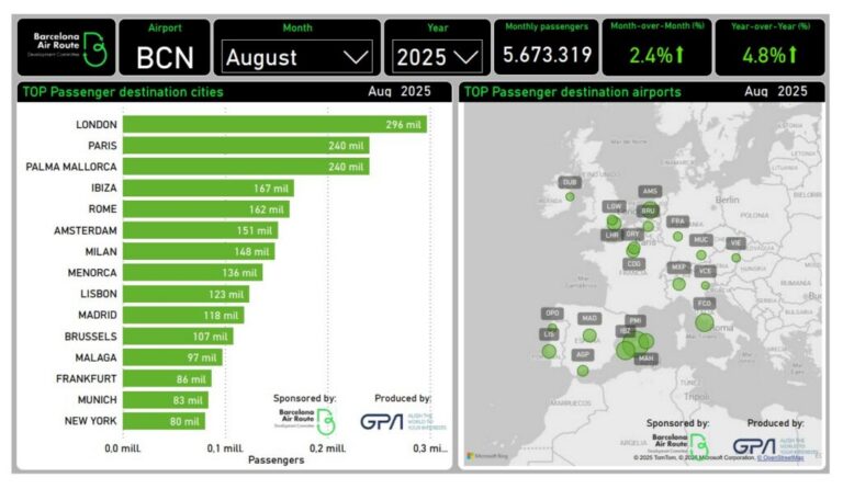 Barcelona's performance remains positive with 4.8%⬆ (Year-over-Year) and 2.4%⬆ (Month-over-Month). Total Mothly Passenger: 5.673.319